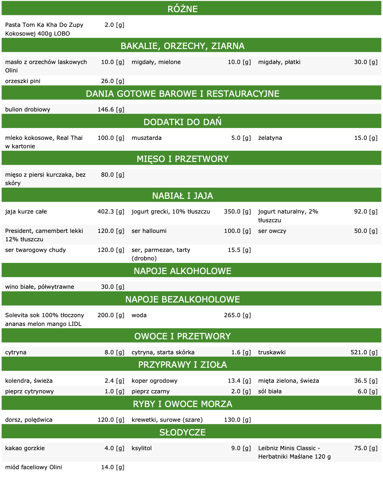 W diecie zostały użyte produkty powszechnie dostępne, dostaniesz je m.in. w takich sieciach sklepowych jak Biedronka czy Lidl.