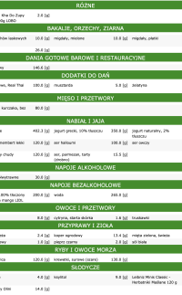 - makro składników użytych w przepisach dla osób chcących dokonać wymian.