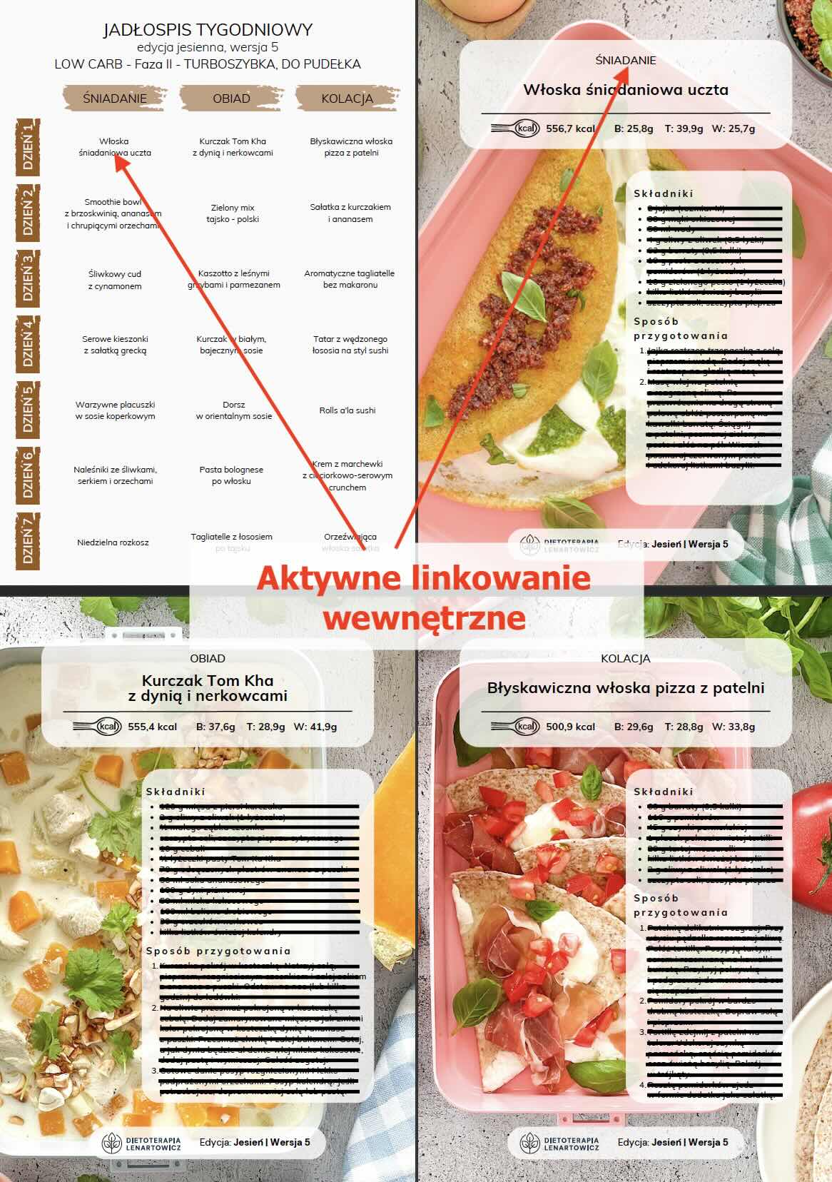 Dieta JESIEŃ wersja 5 LOW CARB do pudełka to jeden z kilku tygodni FAZY II i jest elementem szerszego, III- fazowego planu, szczegółowo opisanego w dołączonym do diety skrypcie oraz w poście https://qchenne-inspiracje.pl/strategia-low-carb-srodziemnomorskie-diety-gotowe-jadlospisy/. Pamiętaj też, że potrawy w ramach wszystkich diet LOW CARB Faza II można wymieniać między dniami i między dietami zgodnie z tym, na co akurat masz dziś ochotę. Należy tylko kierować się zasadą śniadanie za śniadanie, obiad za obiad i kolacja za kolację. W ten sposób, posiadając kilka diet z fazy II, możesz stworzyć swój własny jadłospis spośród ulubionych posiłków.