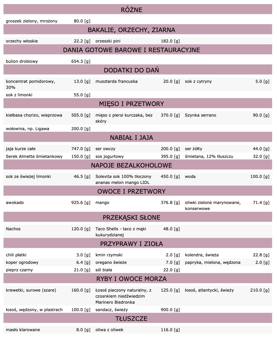 Składniki na dania w ujęciu sumarycznym wychodzą bardzo drogo. Nie podobało mi się jedzenie chorizo dzień w dzień. Jedna ze słabszych Pani diet.
