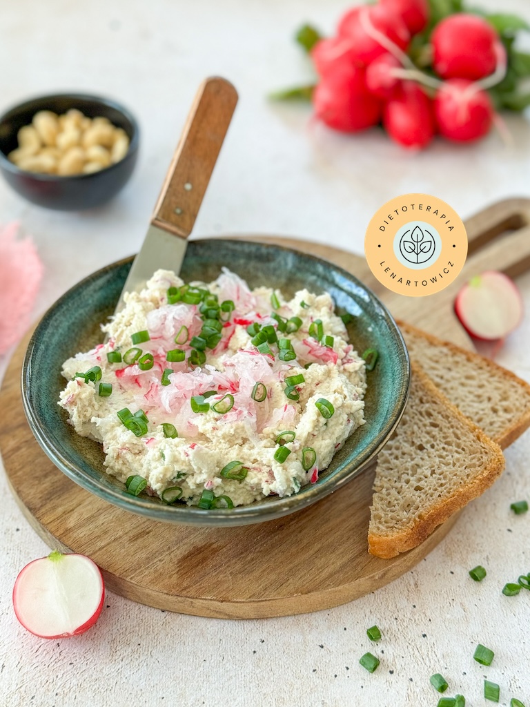 - Wegański twarożek z rzodkiewką i szczypiorkiem