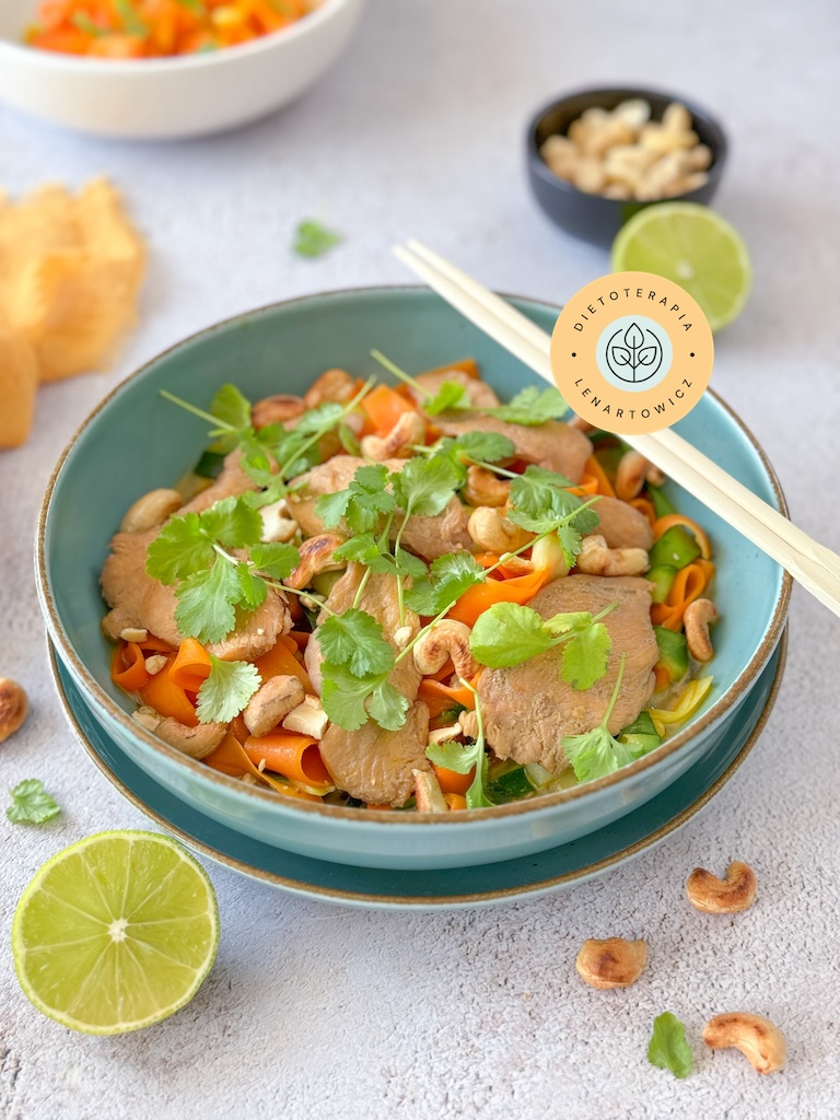 - Kurczak w tajskiej potrawce z warzywnym tagliatelle