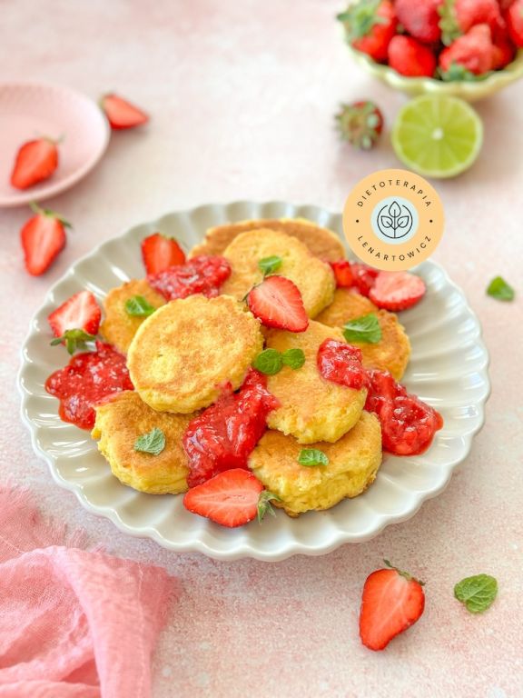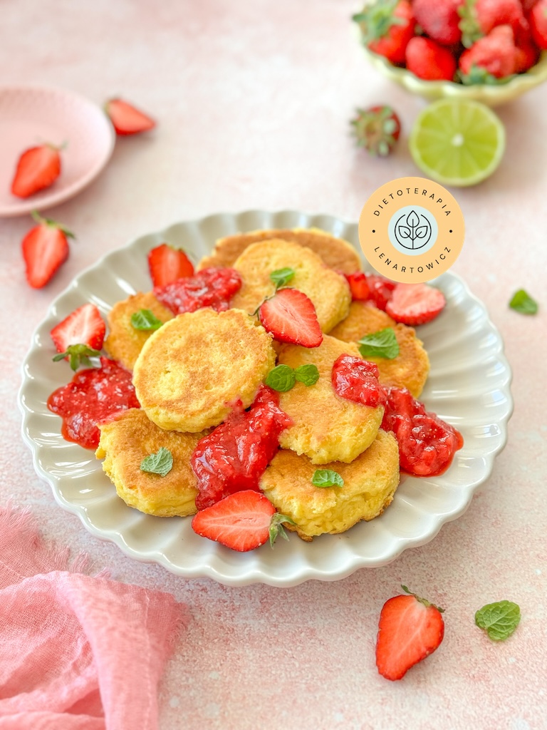 - Wegańskie serniczki z tofu z patelni z musem truskawkowym