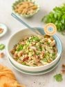 - Włoska pasta z pancettą, wegańską fetą, awokado i aromatycznym czosnkiem