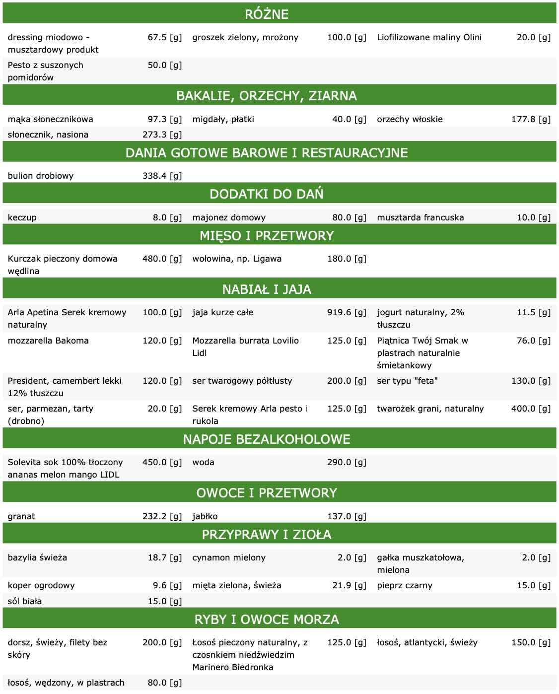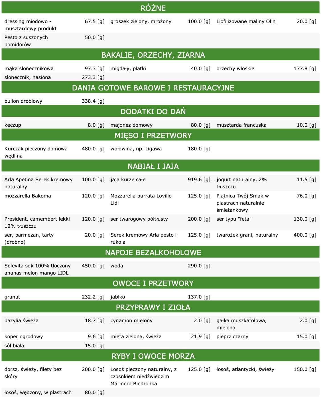 W diecie zostały użyte produkty powszechnie dostępne, dostaniesz je m.in. w takich sieciach sklepowych jak Biedronka czy Lidl.