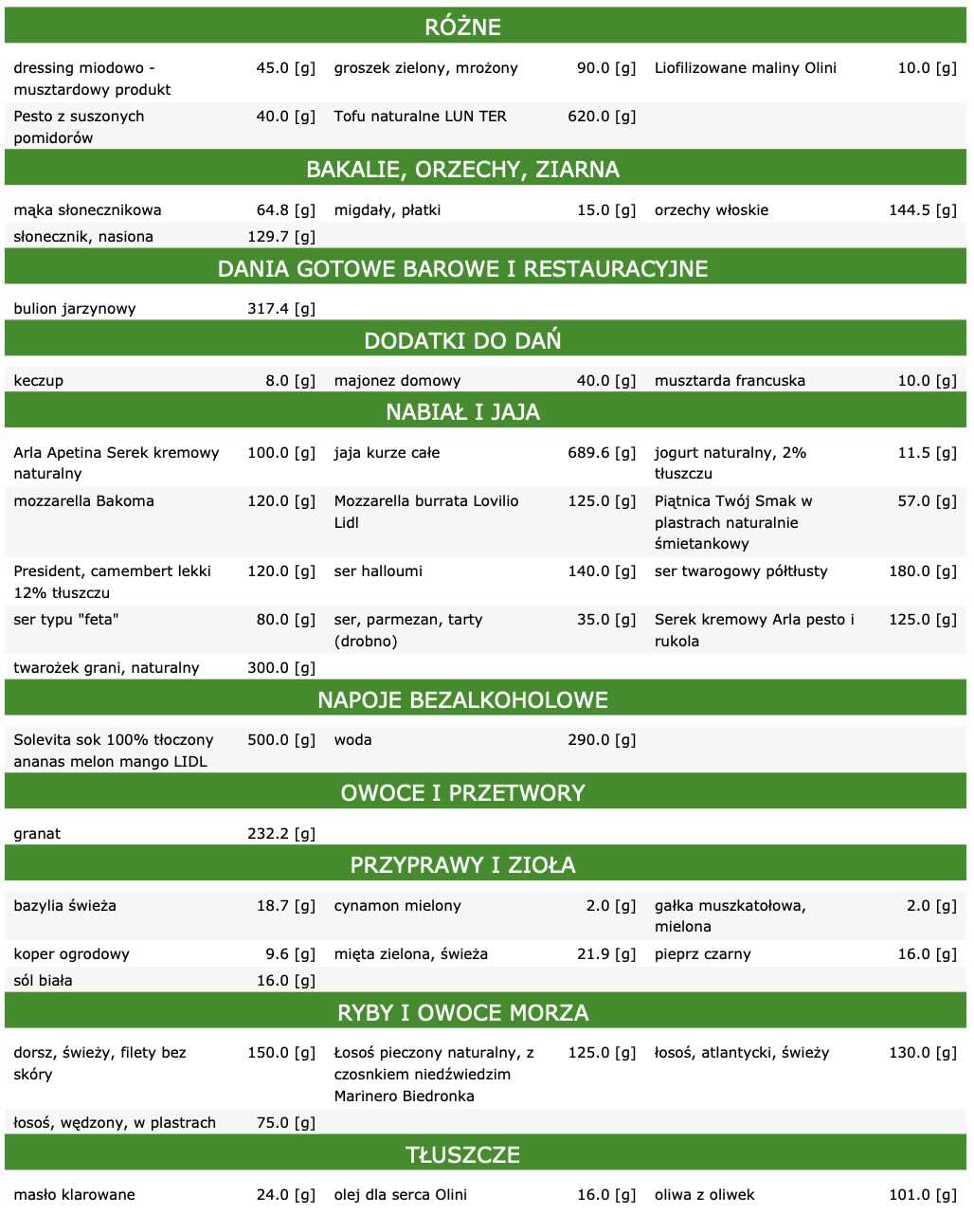 W diecie zostały użyte produkty powszechnie dostępne, dostaniesz je m.in. w takich sieciach sklepowych jak Biedronka czy Lidl.