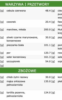 - makro składników użytych w przepisach dla osób chcących dokonać wymian.