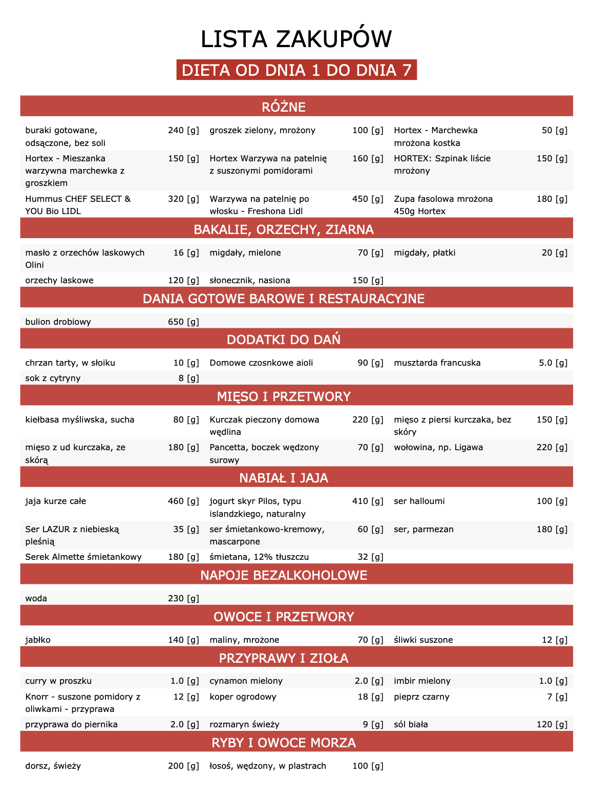 W diecie zostały użyte produkty powszechnie dostępne, dostaniesz je m.in. w takich sieciach sklepowych jak Biedronka czy Lidl.
