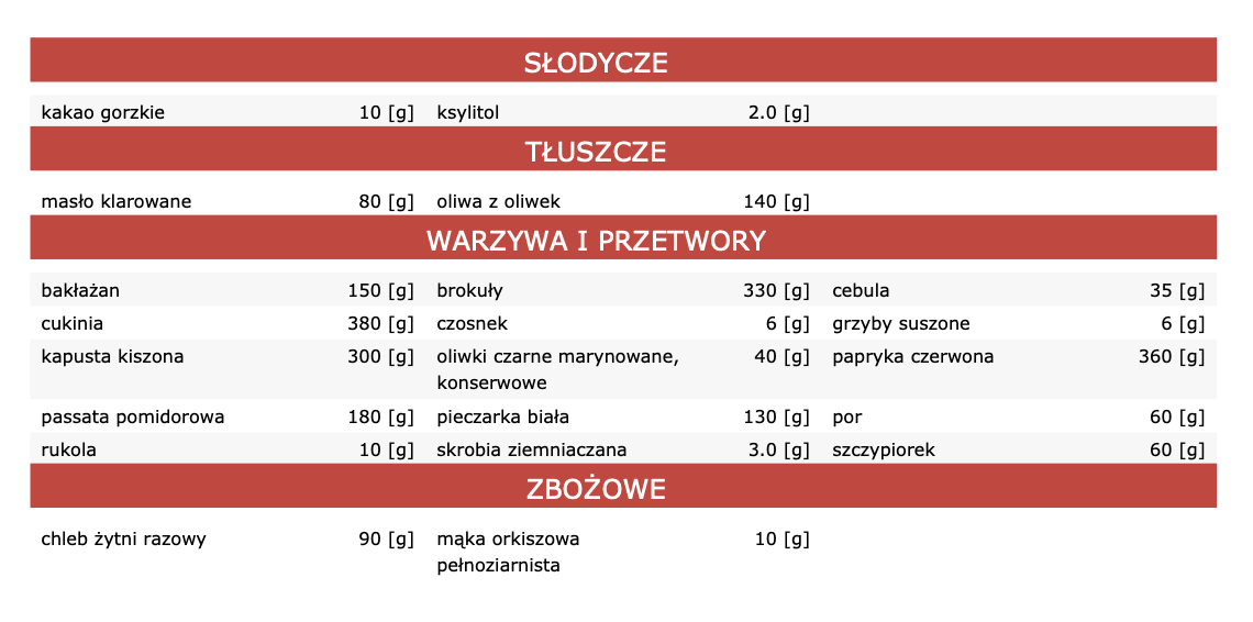 listę produktów, które polecam do przygotowania potraw,