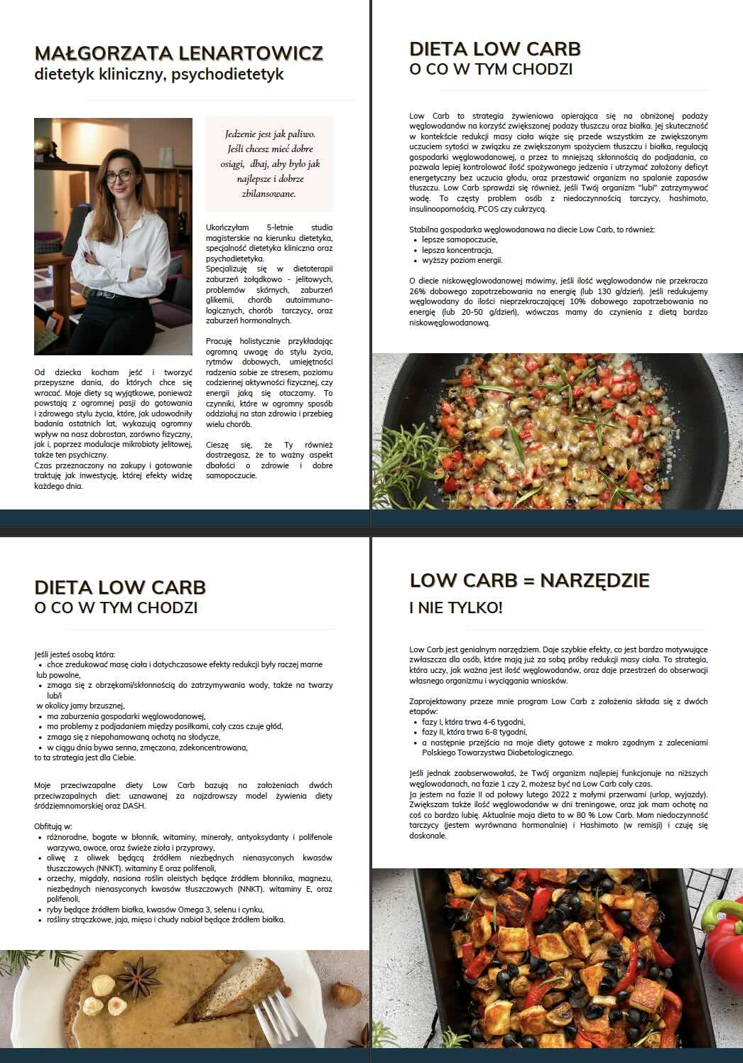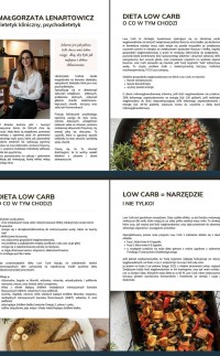 kilkudziesięciostronicowy skrypt opisujący strategię LOW CARB, informacje o korzyściach płynących z jej stosowania oraz zalecenia, porady i niezbędne suplementacje,