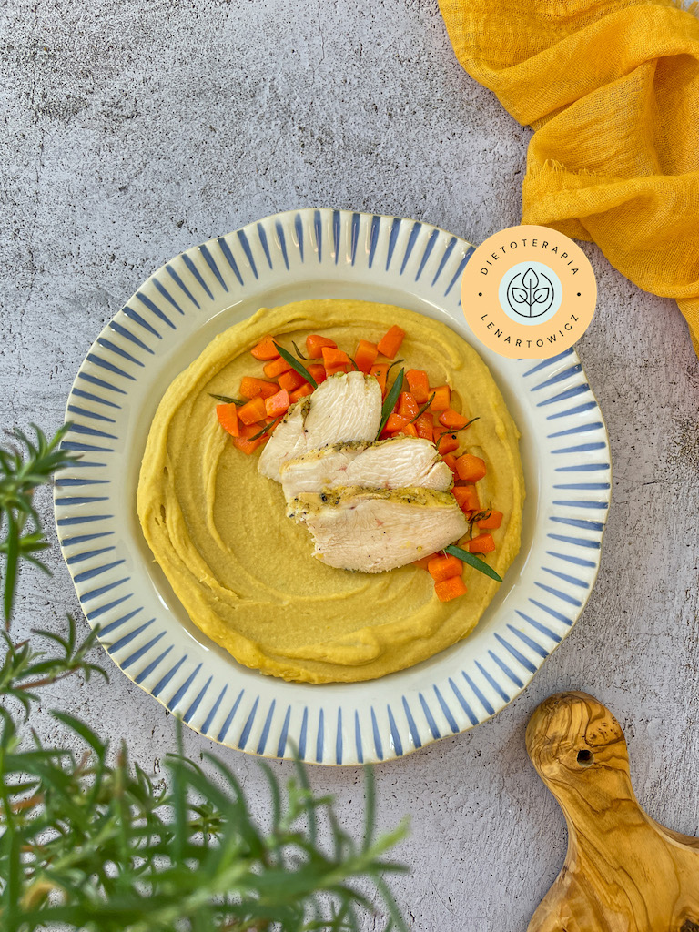 Hummus z orientalną sałatką z marchewki z rozmarynem