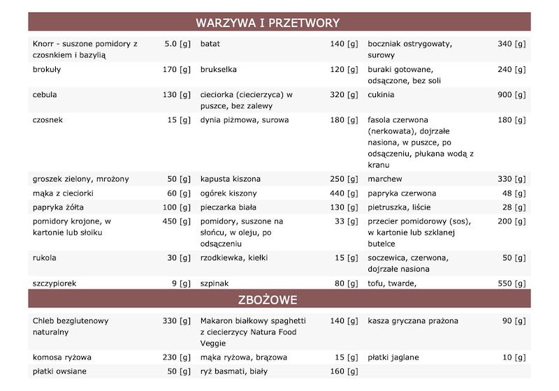 • makro składników użytych w przepisach dla osób chcących dokonać wymian.