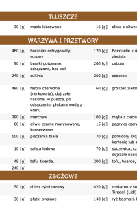Kupując gotowy jadłospis wegetariański zwróćcie uwagę na tabele białek, tłuszczów i węglowodanów. Zobaczcie ile czego jest w konkretnych produktach. Ile czego być musi, aby dieta była dobrze zbilansowana.