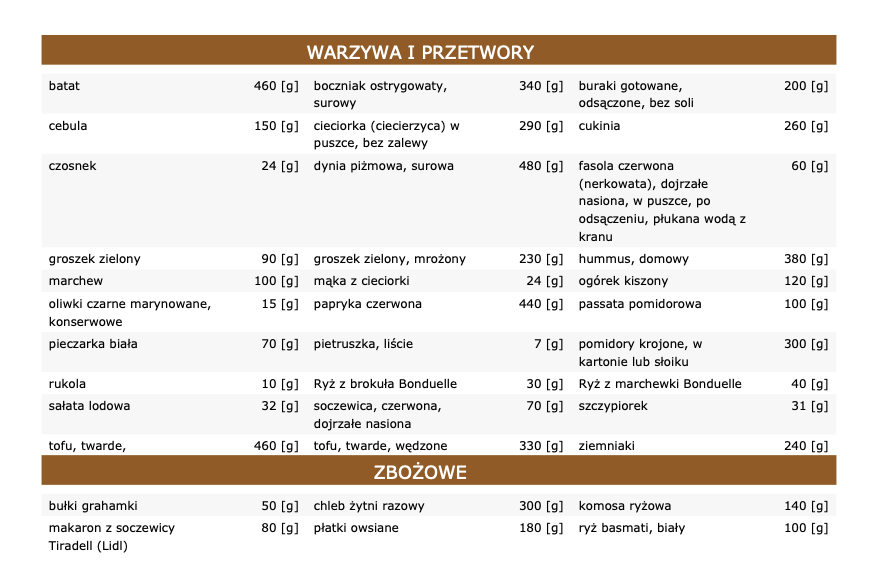 Kupując gotowy jadłospis wegetariański zwróćcie uwagę na tabele białek, tłuszczów i węglowodanów. Zobaczcie ile czego jest w konkretnych produktach. Ile czego być musi, aby dieta była dobrze zbilansowana.
