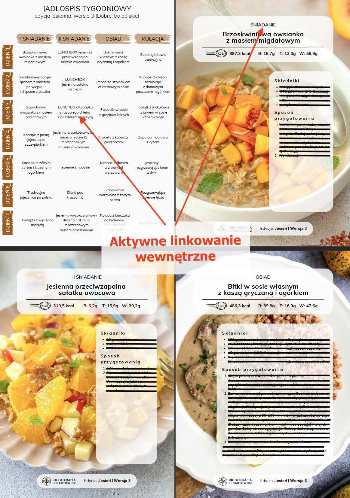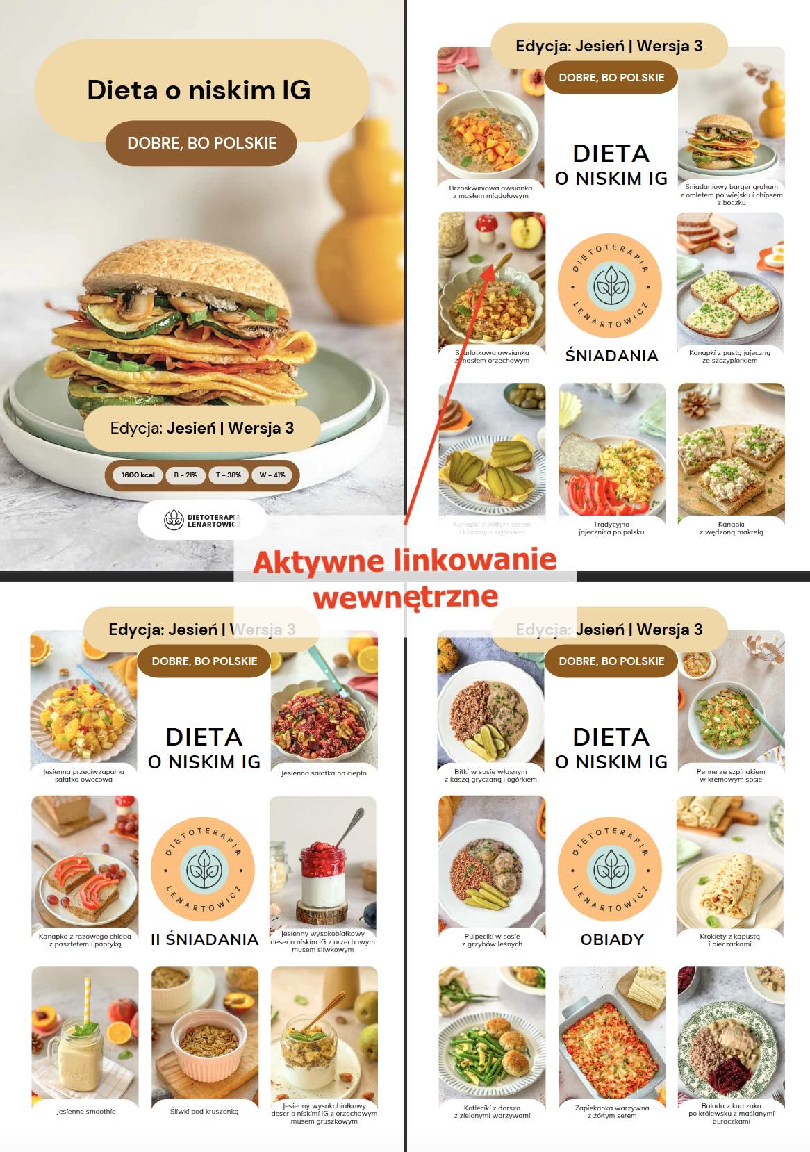 ilustrowany spis potraw z aktywnym linkowaniem wewnętrznym powodującym, że po kliknięciu w nazwę potrawy czy zdjęcie następuje automatyczne przeniesienie do przepisu (nie trzeba scrollować),