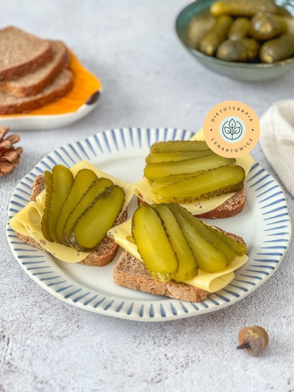 Wiejskie kanapeczki z chleba razowego z żółtym serem i dodatkami
