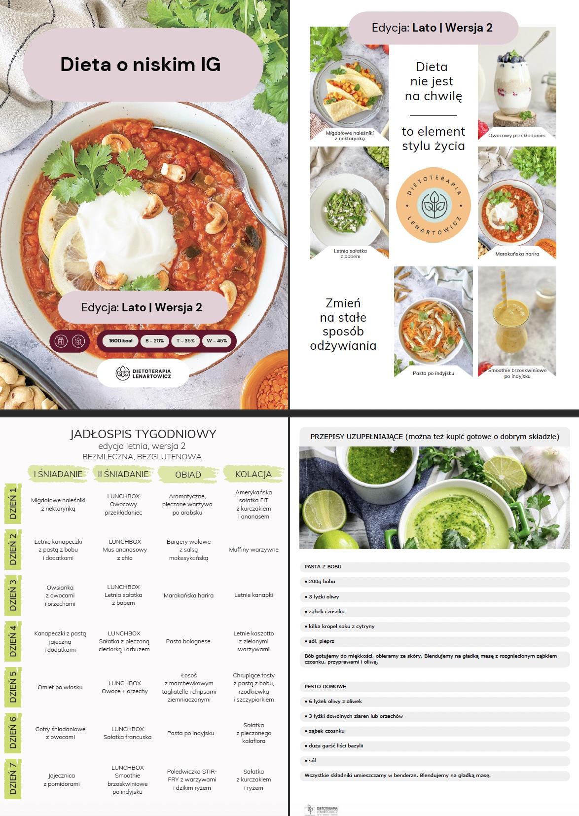 - 7-dniowy jadłospis o niskim indeksie glikemicznym, w tym: