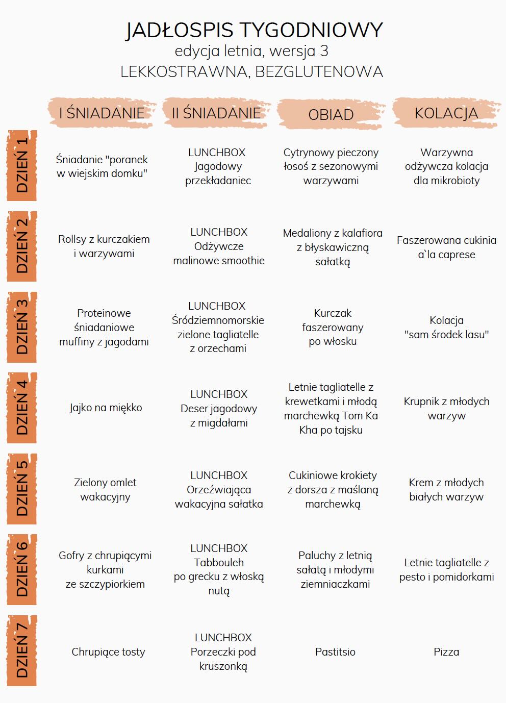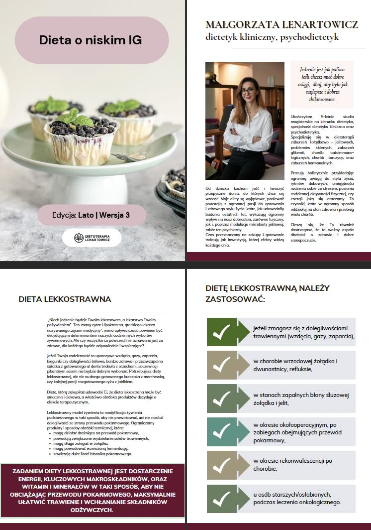 - 7-dniowy jadłospis o niskim indeksie glikemicznym, w tym: