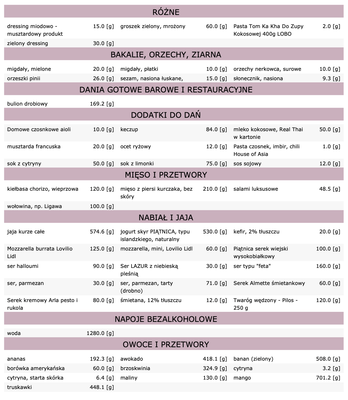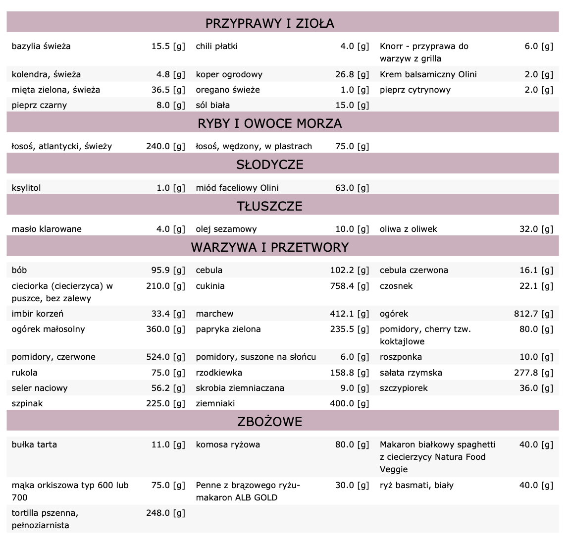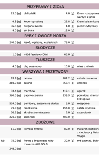 Dieta zawiera 28 posiłków (7 dni, 4 posiłki dziennie):