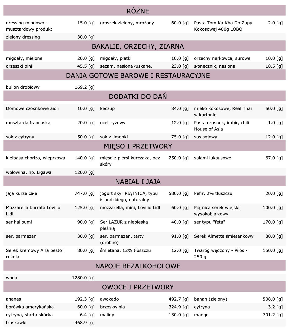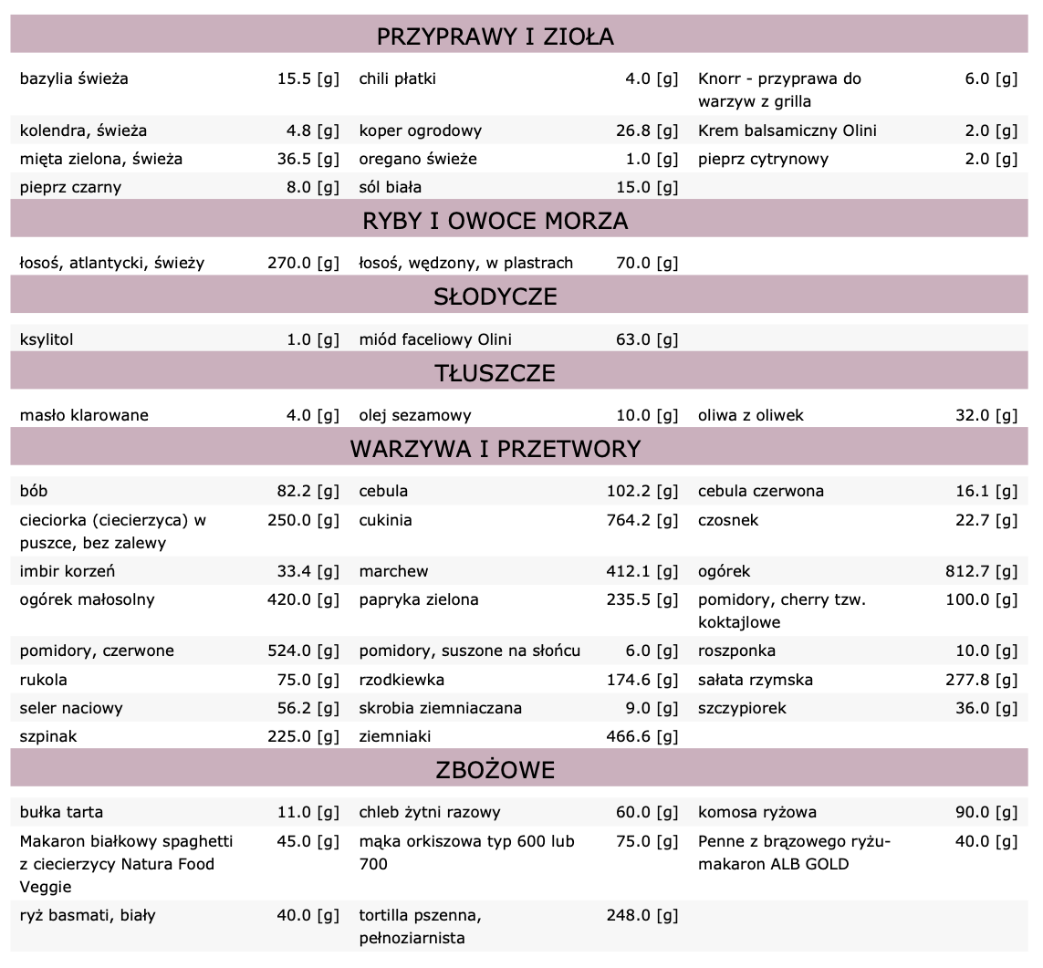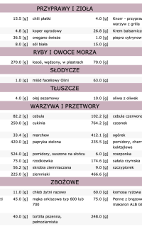 Dieta zawiera 28 posiłków (7 dni, 4 posiłki dziennie):
