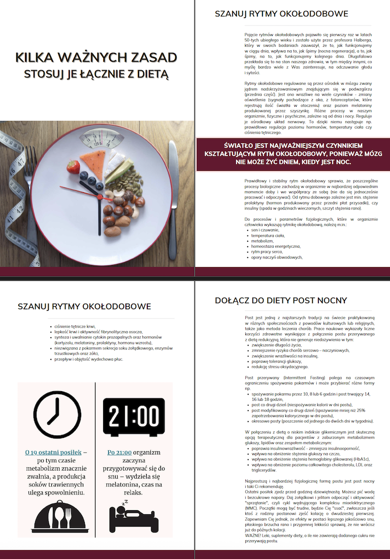 W przypadku współistniejących dolegliwości żołądkowo - jelitowych (wzdęcia, gazy, uczucie pełności, ciężkości, zaparcia) zalecam dietę lekkostrawną. W przypadku refluksu zalecam dietę lekkostrawną lub dietę LOW CARB.Osobom ze współistniejącym SIBO oraz IBS rekomenduję dietę LOW FODMAP dostępną w sklepie wraz z ebookiem IBS Zespół Jelita Drażliwego.