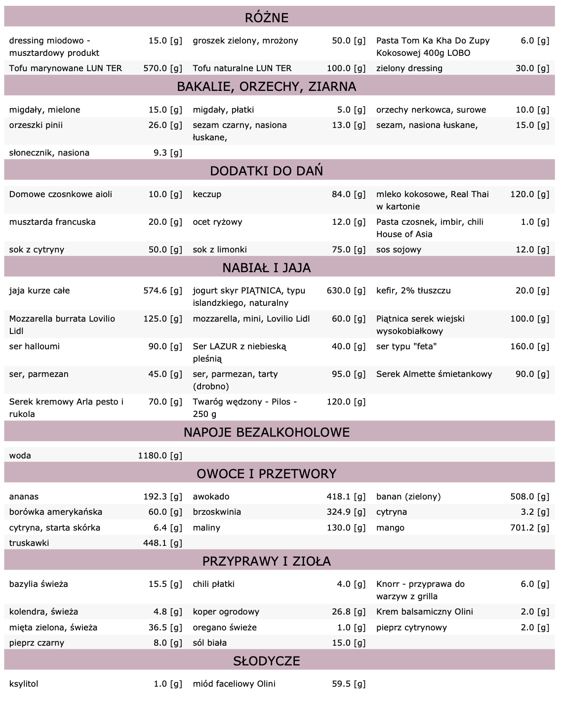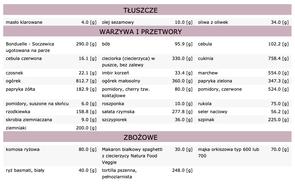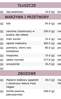 Dieta zawiera 28 posiłków (7 dni, 4 posiłki dziennie):