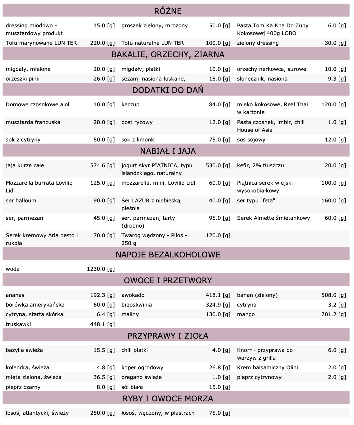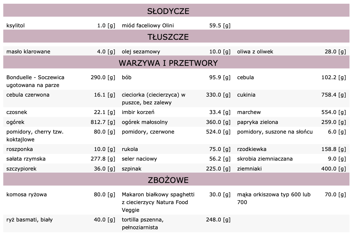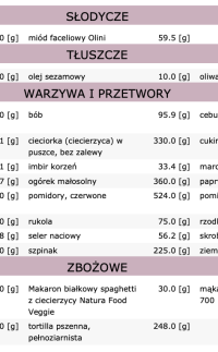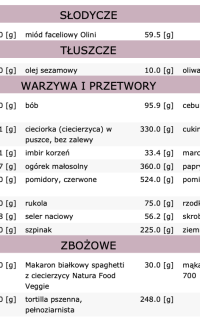 Dieta zawiera 28 posiłków (7 dni, 4 posiłki dziennie):