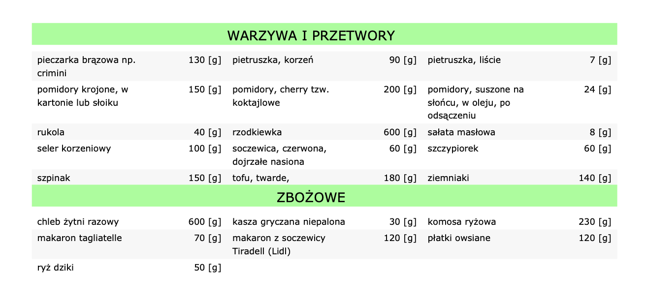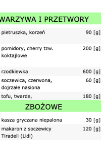 Kupując gotowy jadłospis wegetariański zwróćcie uwagę na tabele białek, tłuszczów i węglowodanów. Zobaczcie ile czego jest w konkretnych produktach. Ile czego być musi, aby dieta była dobrze zbilansowana.