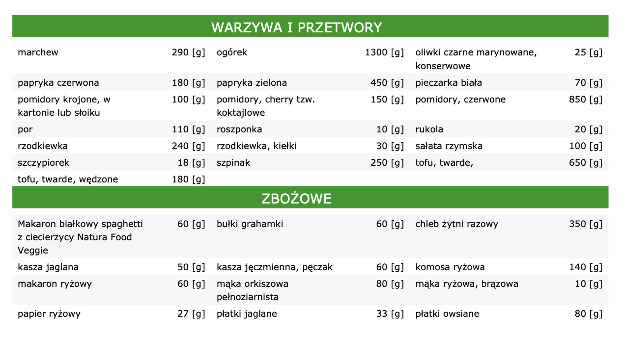 Kupując gotowy jadłospis wegetariański zwróćcie uwagę na tabele białek, tłuszczów i węglowodanów. Zobaczcie ile czego jest w konkretnych produktach. Ile czego być musi, aby dieta była dobrze zbilansowana.