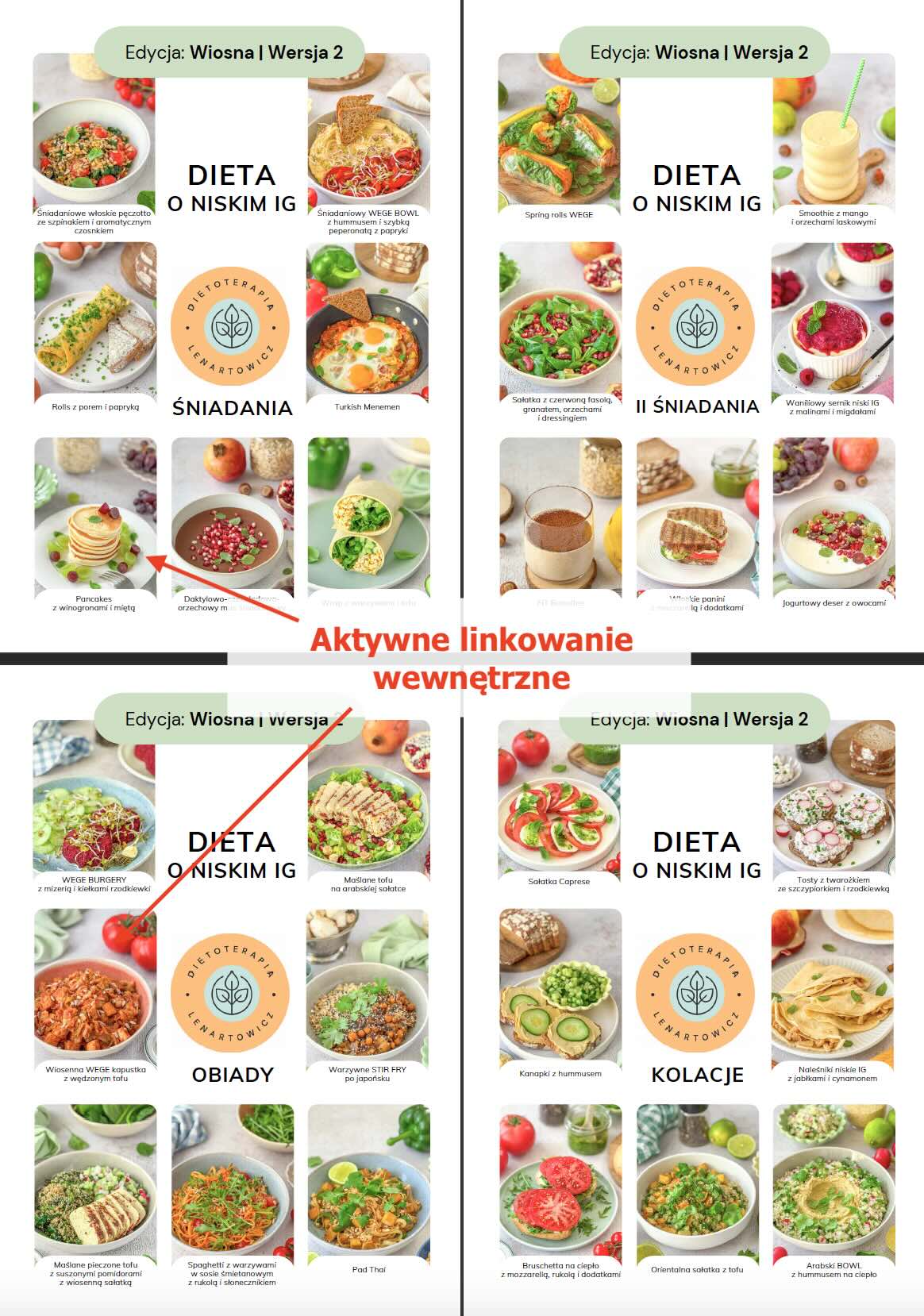 Potrawy we wszystkich dietach "Wersja wiosenna 2" są podobne z tą różnicą, że w wersji WEGE potrawy mięsne zostały zastąpione potrawami wegetariańskimi.