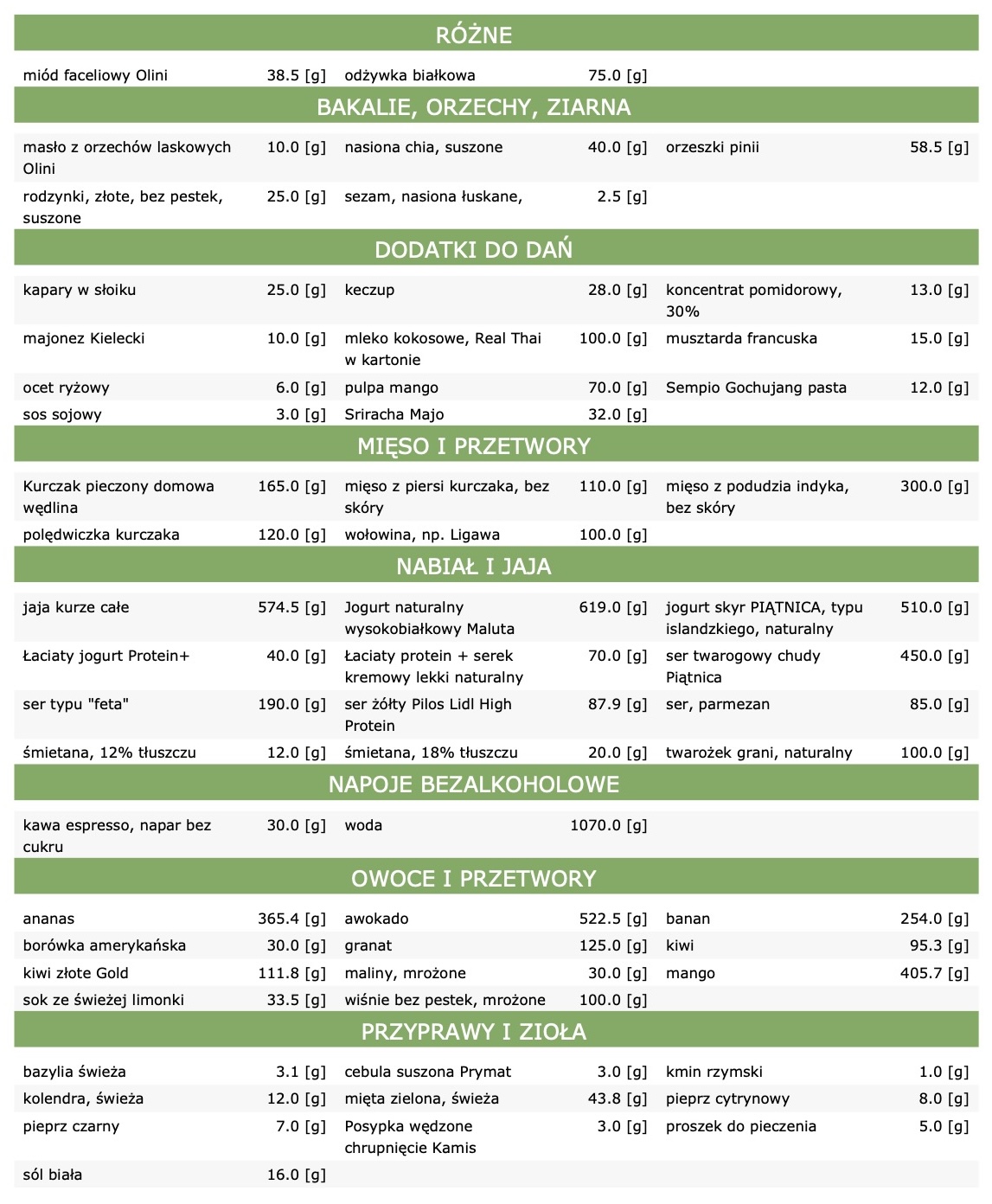 - makro składników użytych w przepisach dla osób chcących dokonać wymian.
