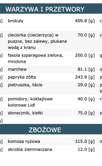 - informacje o gotowych produktach wykorzystanych w diecie,
