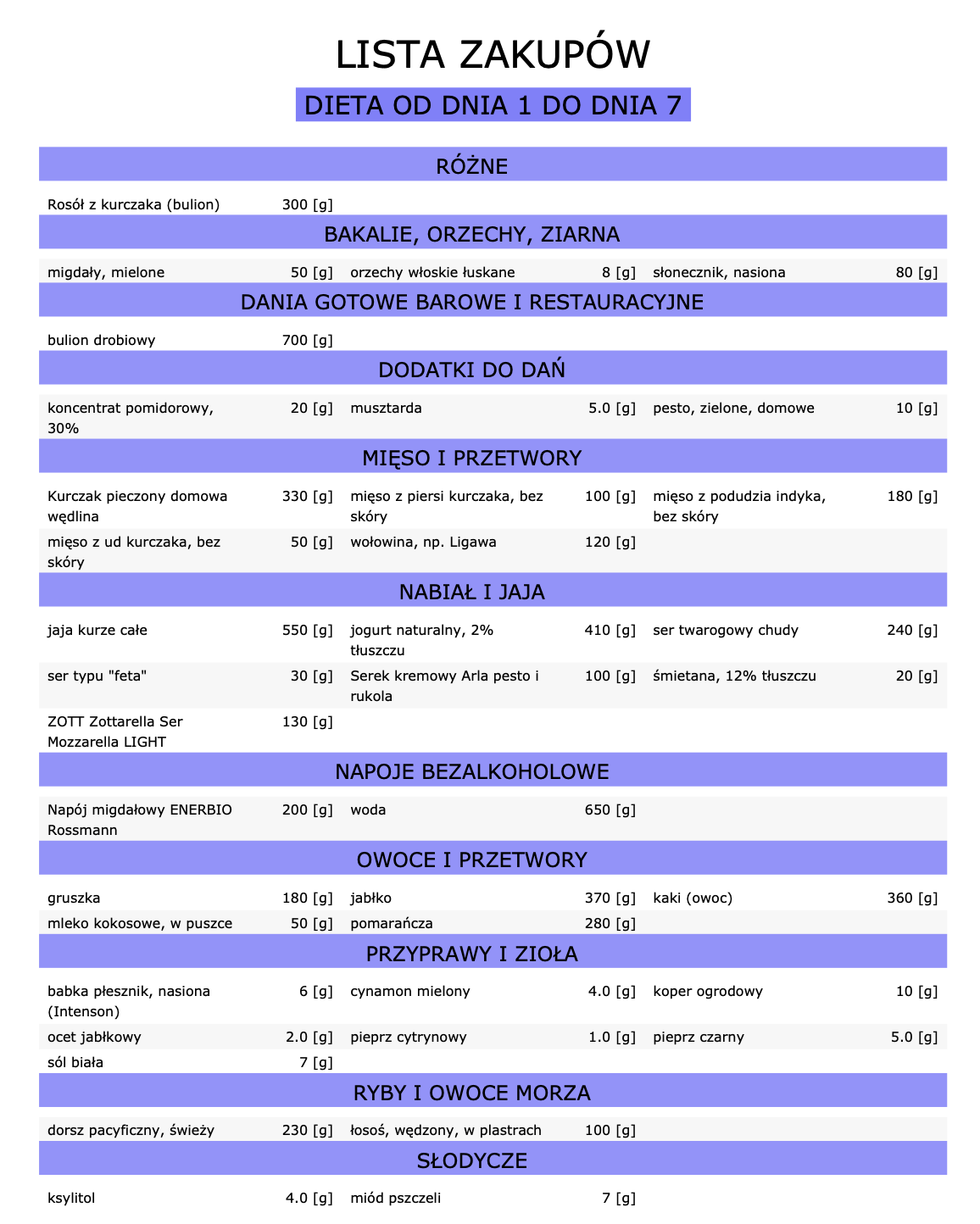 W diecie zostały użyte produkty powszechnie dostępne, dostaniesz je m.in. w takich sieciach sklepowych jak Biedronka czy Lidl.