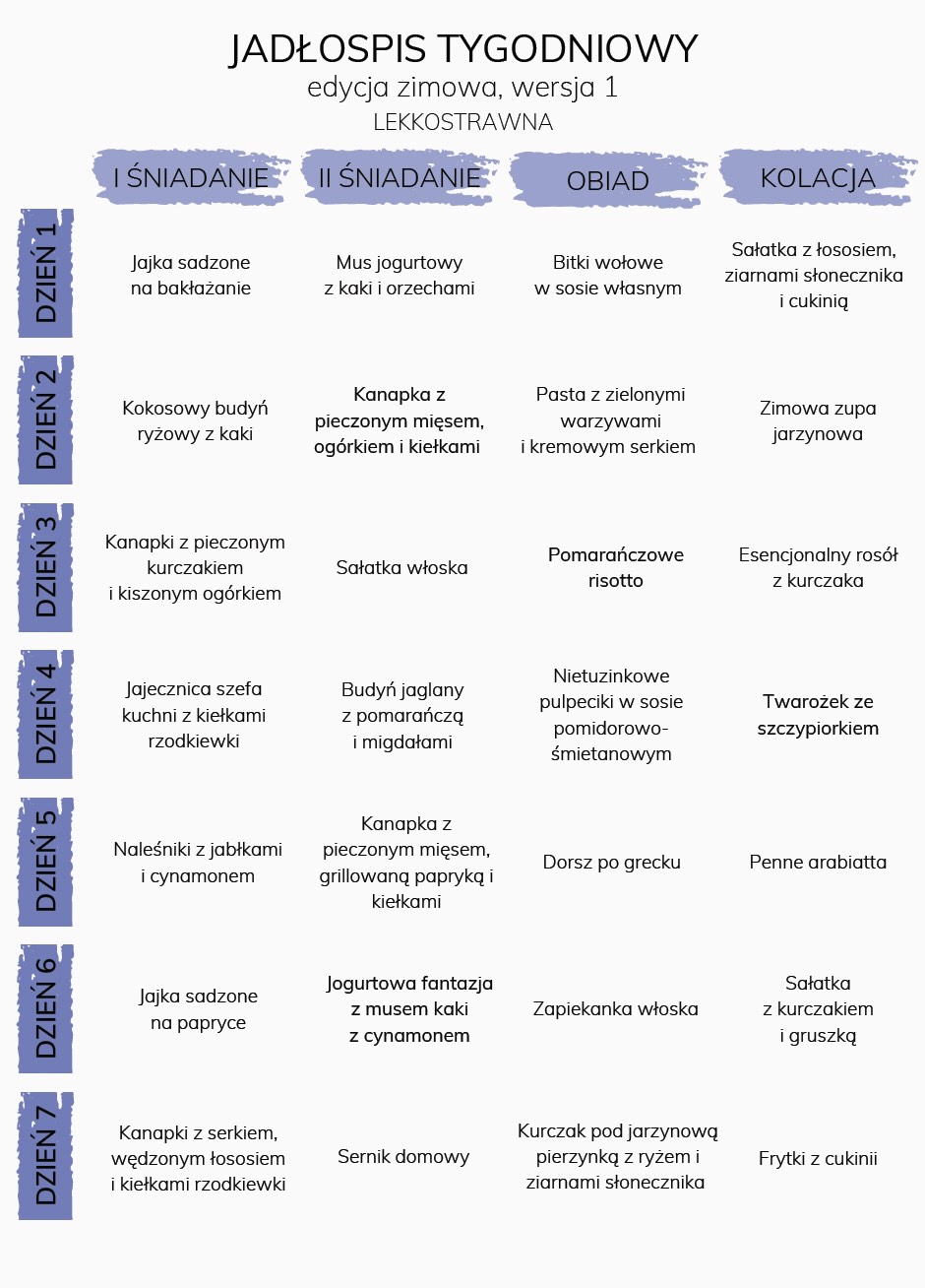 - MENU tygodniowe do przyczepienia na lodówkę,