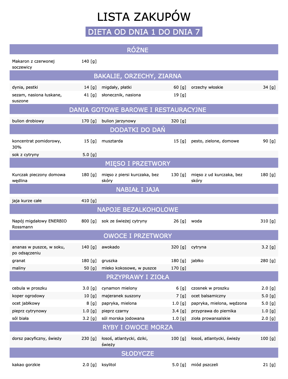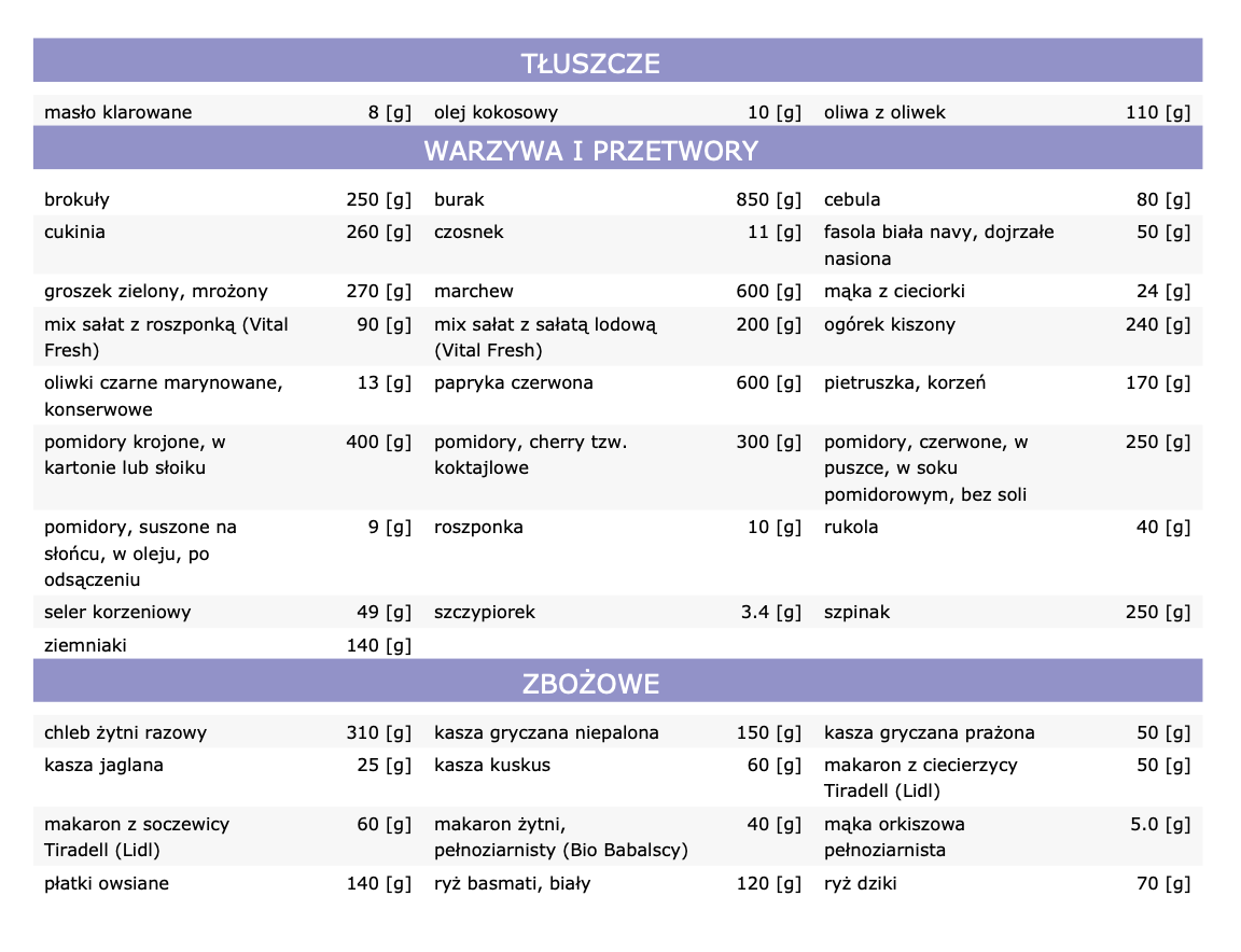 W diecie zostały użyte produkty powszechnie dostępne, dostaniesz je m.in. w takich sieciach sklepowych jak Biedronka czy Lidl.