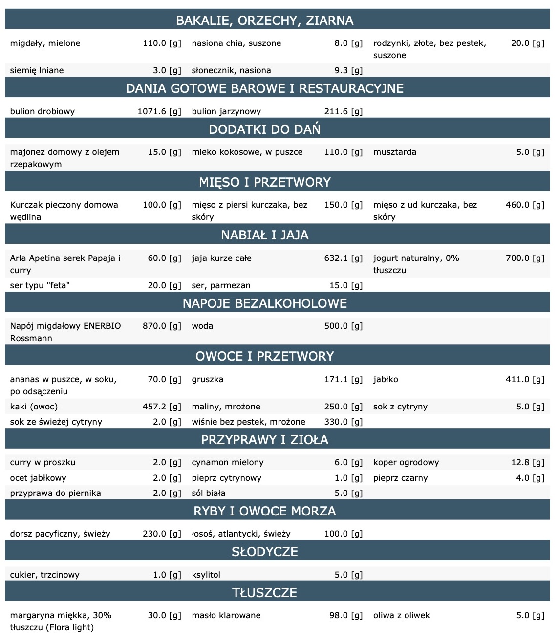 W diecie zostały użyte produkty powszechnie dostępne, dostaniesz je m.in. w takich sieciach sklepowych jak Biedronka czy Lidl.