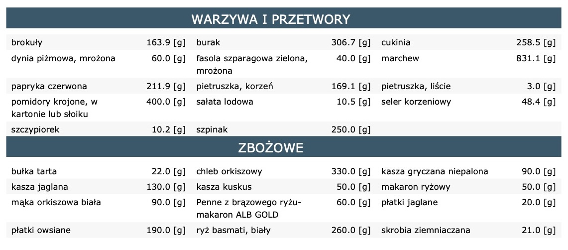 - makro składników użytych w przepisach dla osób chcących dokonać wymian.
