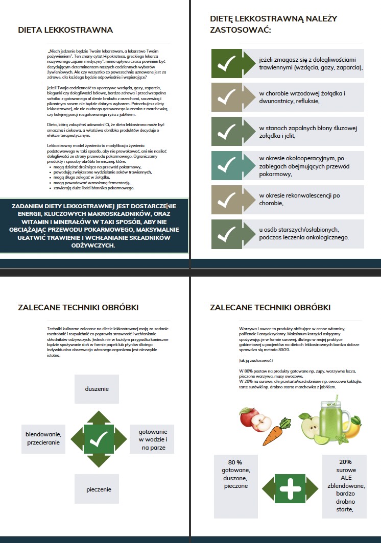 - jakie są zalecane techniki obróbki pożywienia na diecie lekkostrawnej,