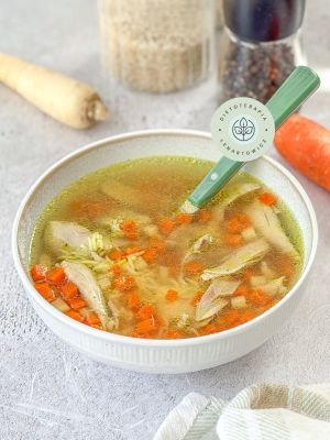 - przepisy na bulion drobiowy, bulion jarzynowy, majonez i domową wędlinę z pieczonego kurczaka wykorzystane w diecie,