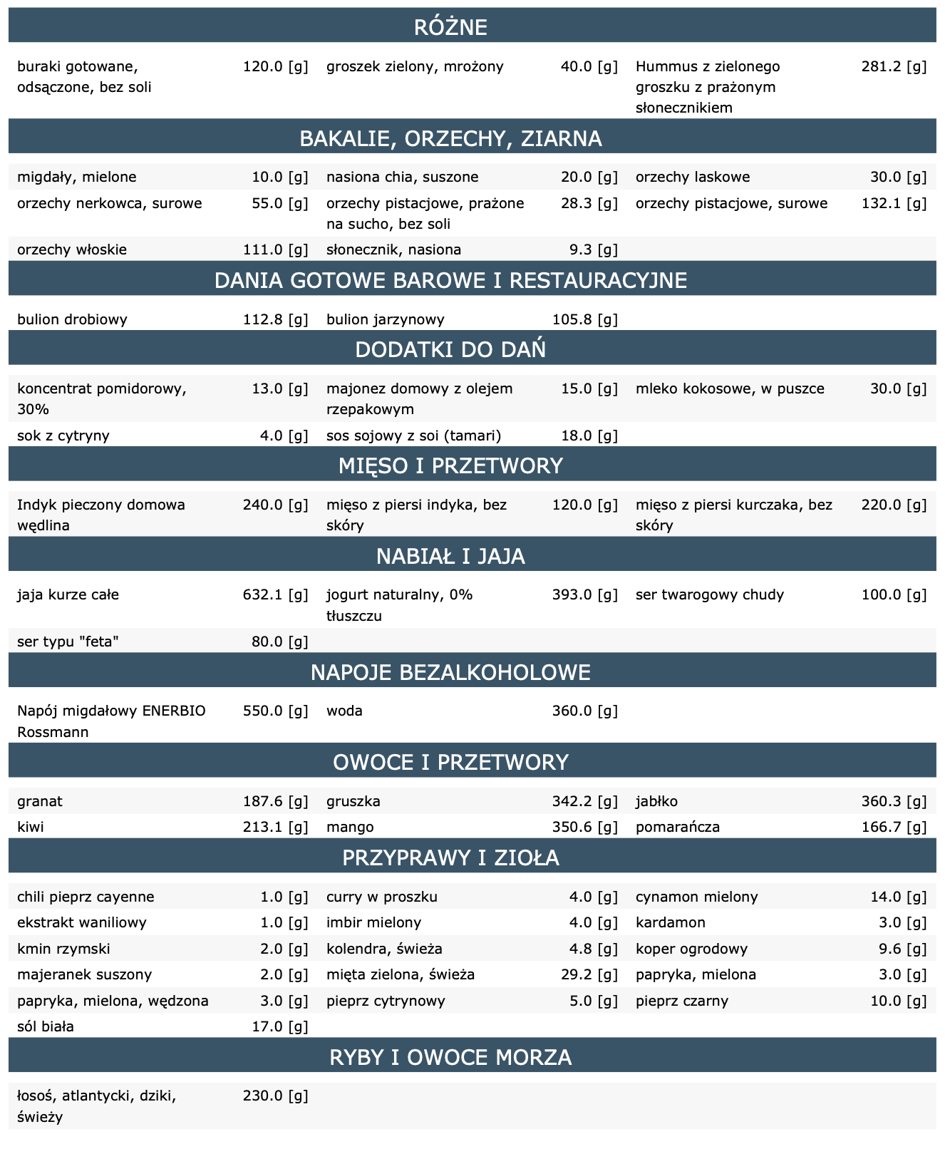 - przepisy na zielony hummus, majonez domowy i domową wędlinę z pieczonego indyka wykorzystane w diecie,