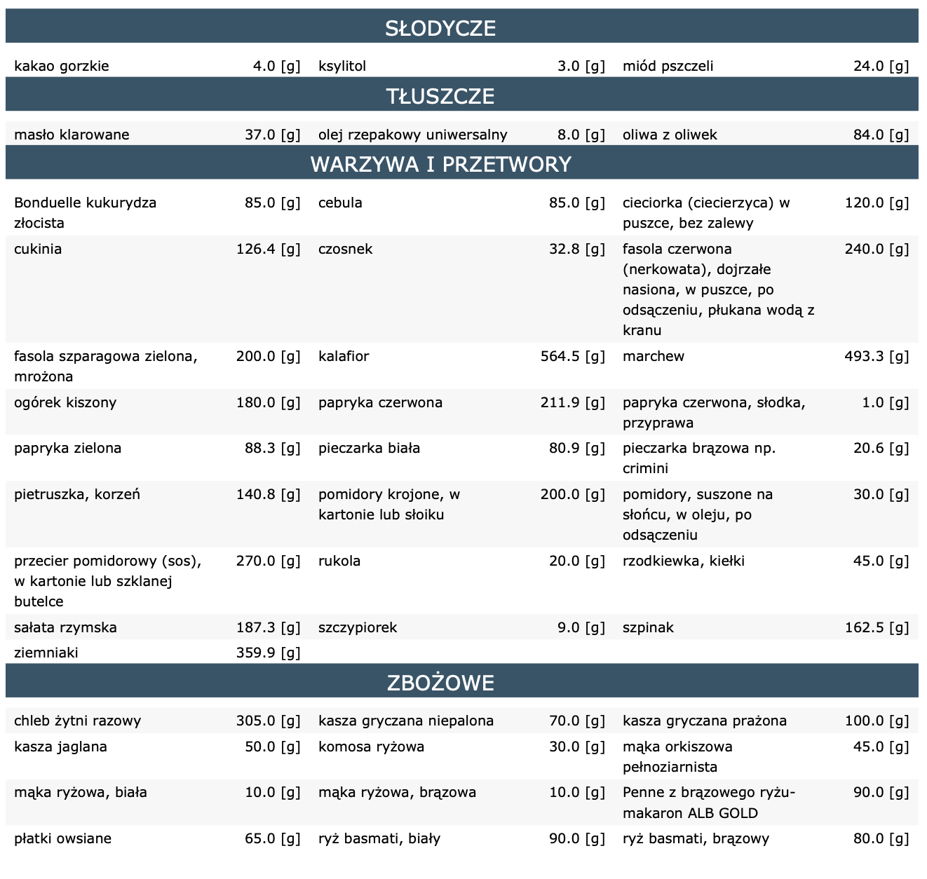 - makro składników użytych w przepisach dla osób chcących dokonać wymian.