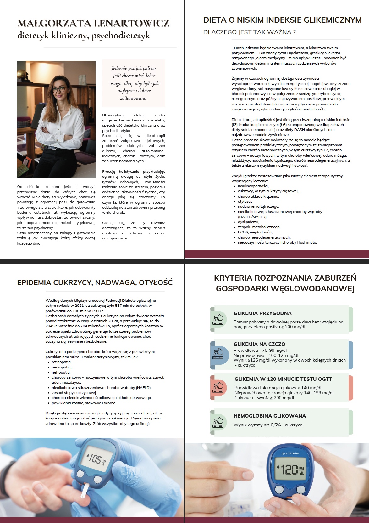 - obszerny kilkudziesięciostronicowy skrypt zawierający dużą dawkę wiedzy podanej w przystępny sposób, m.in. informacje o korzyściach ze stosowania diety o niskim indeksie glikemicznym, porady dotyczące kluczowych czynników wpływających na metabolizm, insulinowrażliwość, tolerancję glukozy, ryzyko chorób metabolicznych,