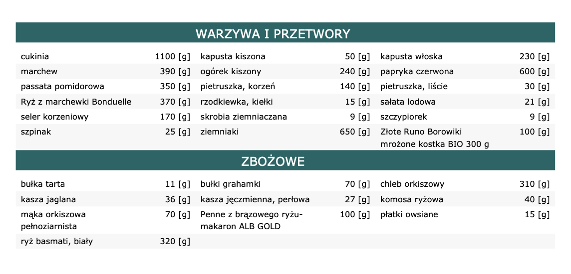 W diecie zostały użyte produkty powszechnie dostępne, dostaniesz je m.in. w takich sieciach sklepowych jak Biedronka czy Lidl.