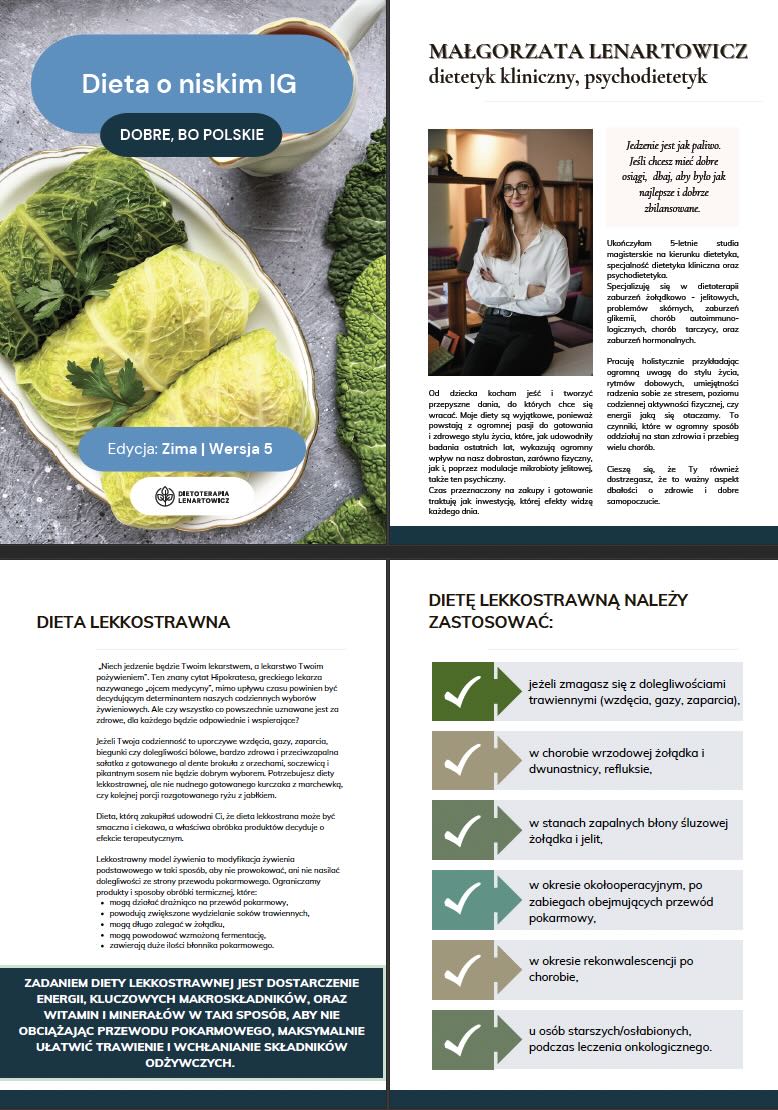 Dietę lekkostrawną rekomenduję osobom ze współistniejącymi dolegliwościami żołądkowo - jelitowymi (refluks, wzdęcia, gazy, uczucie pełności, ciężkości, zaparcia). Proponowana dieta lekkostrawna będzie także odpowiednia dla osób z wrzodziejącym zapaleniem jelita grubego (WZJG)oraz chorobą Leśniowskiego-Crohna (LC) w okresie remisji celem jej jak najdłuższego utrzymania.