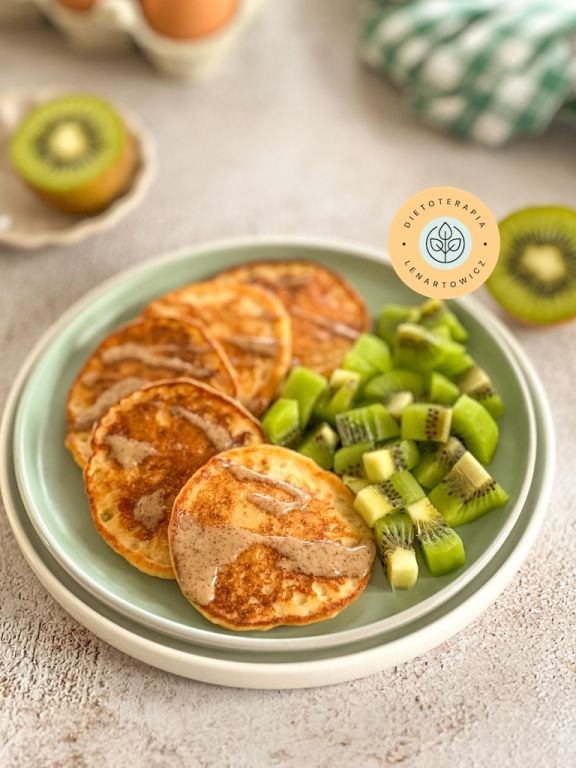 Wysokobiałkowe placuszki z kiwi i sosem orzechowym