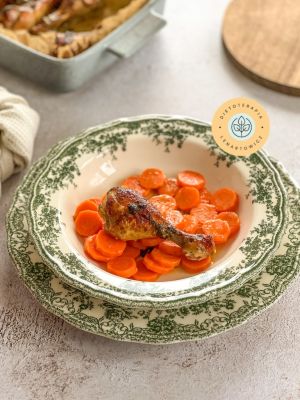 Kurczak pieczony w miodowej marynacie z zielonymi maślanymi warzywami