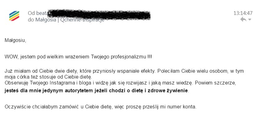 Warunkiem podjęcia współpracy ze mną w ramach indywidualnej opieki dietetycznej jest wykupienie pierwszej konsultacji.